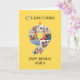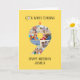 Faça do seu filho o 9º aniversário extra especial com este adorável 9º Cartão com fotos de aniversário. Com um fundo amarelo alegre, design de "Olha quem está girando 9" e um grande número nove ilustrado como uma vela de aniversário, este cartão é cheio de alegria e charme. O verso do cartão inclui um gráfico de cupcake doce com um "Parabéns". A dentro do cartão tem muito espaço para suas próprias palavras sinceras. Perfeito para pais, avós, amigos, ou família, este cartão é um guardião para o tesouro quando seu filho celebra seu nono aniversário.