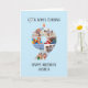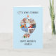 Faça do seu filho o 9º aniversário extra especial com este adorável 9º Cartão com fotos de aniversário. Com um fundo azul claro, design de "Olha quem está girando 9", e um grande número nove ilustrado como uma vela de aniversário, este cartão é cheio de alegria e charme. O verso do cartão inclui um gráfico de cupcake doce com um "Parabéns". A dentro do cartão tem muito espaço para suas próprias palavras sinceras. Perfeito para pais, avós, amigos, ou família, este cartão é um guardião para o tesouro quando seu filho celebra seu nono aniversário.