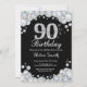 Convite de aniversário de 90. Fundo do Quadro do Diamante do Silver Rhinestone. Convidado Elegante Birthday Bash. Preto & Branco. Aniversário Adulto. Mulheres Aniversário. Homens Aniversário. Para mais personalização, clique no botão "Personalizar" e use nossa ferramenta de design para modificar este modelo.