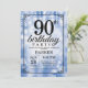 Convite de aniversário de 90 com luzes azuis de cordas com fundo azul brilhante. Aniversário Azul. Aniversário Adulto. Homens ou Mulheres no Dia Convidam. 13 15 16º 18º 20 21 rua 30 40º 50º 80 de 60º 70 de 100º, qualquer idade. Para mais personalização, clique no botão "Personalizar" e use a ferramenta design para modificar este modelo.