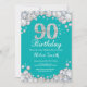 Convite de aniversário de 90. Teal e Silver Rhinestone Diamond Teal Turquoise Aqua Fundo. Convidado Elegante Birthday Bash. Aniversário Adulto. Mulheres Aniversário. Homens Aniversário. Para mais personalização, clique no botão "Personalizar" e use nossa ferramenta de design para modificar este modelo.