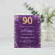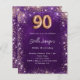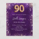 Celebre um 90 especial de aniversário com este convite maravilhoso, perfeito para uma festa elegante. O fundo roxo profundo apresenta uma bela textura irregular, acentuada por rosa dourado e ouro falso brilho para um toque de brilho. O nome é escrito em um texto delicado, escrito à mão, acrescentando um toque personalizado e sofisticado. Personalize o convite adicionando o nome e todos os detalhes importantes da parte. Este design luxuoso dá o tom para uma celebração inesquecível. 1 folha = 1 convite impresso de borda a borda.