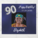 Um fundo azul marinho. A cor azul é irregular. Personalize e adicione uma data, um nome e uma foto. Número de idade escrito com uma letra falsa no estilo do balão com aspecto prateado.