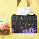 90 é um aniversário especial e merece presentes embrulhados num jornal especial. Este papel de embrulho de presente de 90 aniversário apresenta 90 em negrito roxo num fundo de confetti com preto. Este artigo é maravilhoso para embrulhar presentes especiais para o aniversário de 90 anos. Copyright Kathy Henis