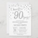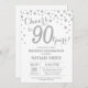 90 Birthday Silver Glitter Diamond Convite