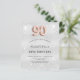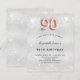 Um convite moderno, na moda e glamouroso para uma festa de aniversário 90. Um fundo com aparência de prata falsa, decorado com poeira brilhante. Personalize e adicione seu nome e detalhes da festa. O número 90 é gravado com uma fonte do estilo do balão ouro rosa, script.