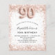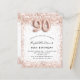 Para um 90 elegante aniversário. Um fundo branco. Decorado com ouro rosa, confete rosa. Personalize e adicione um nome e detalhes da festa. O nome é escrito com um script de estilo manuscrito, número 90 com fontes de estilo de balão.