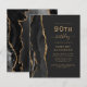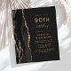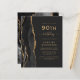 A borda esquerda deste elegante convite de aniversário moderno apresenta uma coloração aquosa preta e borda agitada com falso brilho dourado. O texto personalizável combina manuscrito dourado, fontes em copperplate e itálico em um fundo preto de slate. O verso apresenta um design de agate preto e dourado correspondente.