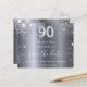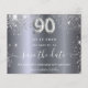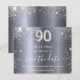 Um elegante cartão Save the Date para uma festa de aniversário 90. Um fundo metálico moderno, falso e prateado, decorado com poeira falsa. Personalize e adicione uma data e nome/idade. O texto: Salvar a Data é gravado com um script de estilo com letra de tendência grande. Número 90 com uma fonte no estilo do balão.