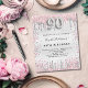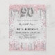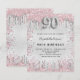 Um convite moderno, na moda e glamouroso para uma festa de aniversário 90. Um fundo de aspecto fino prateado, decorado com pó brilhante de prata rosa e falso. Personalize e adicione o seu nome e detalhes da festa. O número 90 é escrito com uma fonte de estilo de balão, script.