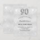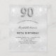 Um convite moderno, na moda e glamouroso para uma festa de aniversário 90. Um fundo com aparência de prata falsa, decorado com poeira brilhante. Personalize e adicione o seu nome e detalhes da festa. O número 90 é escrito com uma fonte de estilo de balão, script.