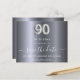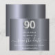 Um cartão Salvar Data elegante para uma festa de aniversário 90. Um fundo metálico moderno falho prateado. Personalize e adicione uma data e nome/idade. O texto: Salvar a Data é gravado com um script de estilo com letra de tendência grande. Número 90 com uma fonte no estilo do balão.