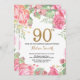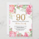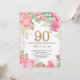 Convite de Aniversário para 90 Floral para Mulheres. Flor Botânica De Aquarela Dourada Glitter. Flores Florais De Pêonias Rosa. Aniversário Adulto. Para mais personalização, clique no botão "Personalizar" e use nossa ferramenta de design para modificar este modelo.