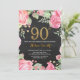 Convite de Aniversário para 90 Floral para Mulheres. Flor Botânica De Aquarela. Dourada Glitter. Fundo do quadro. Flores Florais De Peões Rosa. Aniversário Adulto.