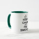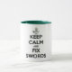 Esta caneca é feita para o grupo Reenacting de Napoleão do dia moderno que retrata o ø batalhão do regimento do rei 95th do pé, sabido como os rifles nos Estados Unidos. Esta caneca pode ser 11oz ou 15oz e tem o acento verde escuro s a representação os uniformes verdes do 95th e manda nossa divisa "manter a calma e fixar espadas" na parte dianteira. Aperfeiçoe para qualquer "copo da manhã de jaqueta verde" do cinza do conde!