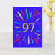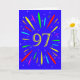 Um cartão de aniversário explosivo do 97º! Que maneira maravilhosa de enviar cartões de aniversários. O número 97 em amarelo brilhante com uma explosão de cores brilhantes e estrelas.