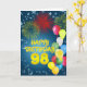 Explodir fogos de artifício acende o céu neste espetacular cartão de aniversário de 98 anos. Muitos balões de celebração contribuem para o sentimento do partido. Um cartão de aniversário adequado para todos. Norma Cornes.