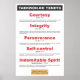Personalize este poster com o logotipo ou nome da sua escola! Este grande poster para escolas e estudantes mostra os 5 Tenets de Taekwon-Do em inglês e coreano, bem como uma breve definição para cada um deles. Excelente para exibição no seu Do-jang ou quarto. Observe que as definições de tenet foram atualizadas em 13 de dezembro de 2011. Este poster também está disponível em duas outras versões. Um apresenta o logotipo da escola AKTA no fundo, o outro é genérico sem logotipo. Personalize seu Poster com o nome ou logotipo da sua escola Basta escolher "Alterar" em "Personalizar" e carregar o logotipo da sua escola.