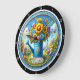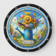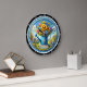 Este encantador relógio redondo apresenta uma água azul que pode transbordar com flores coloridas, contra uma brilhante e alegre cena do jardim. Um sinal de "Bem-vindo" acrescenta um toque amigável. Este relógio branco é perfeito para uma cozinha, para um quarto de sol, ou como sotaque alegre em qualquer sala, trazendo uma atmosfera encantadora e convidativa.