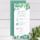 Convide sua festa noiva para um fim de semana de solteirona tropical ensolarado com nossos convites itinerários lindamente elaborados. Projetados para dar o tom para um fim de semana inesquecível para meninas em Miami, estes convites apresentam um trabalho de arte de cor d'água original incluindo um flamingo rosa charmoso, um cocktail refrescante, uma tartaruga marinha serena e folhas de palma monstera, todas em tons vibrantes de azul verde e turquesa. Os detalhes do seu fim de semana são apresentados elegantemente em uma mistura de scripts escritos à mão e tipografia sans serif nítida, fazer que seja fácil para os seus convidados seguirem a agenda cheia de diversão. Ideal para casamentos de praia, getaways tropicais, ou qualquer celebração de bachelorette com temas viagem, esses convites trazem um talento costeiro ao seu planejamento de eventos. Para mais convites para festas de solteira tropicais e de destino, juntamente com programas de casamento de praia que complementam esse tema, visite nossa loja em www.zazzle.com/dotellabelle. Prepare-se para uma comemoração memorável com nossos convites itinerários bem projetados!
