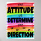 SUA ATITUDE IRÁ DETERMINAR SUA DIREÇÃO! Faça os alunos pensarem com esta poster. Uma sala de aula de na moda e excelente, escritório principal, escritório da assistente social ou poster de escritório de assessoria para desafiar os estudantes a terem uma atitude positiva! Um poster excelente para pendurar em uma escola secundária, sala de aula de segundo grau ou escritório escolar de qualquer tipo! Excelente poster para assessores de orientação escolar, consultórios de carreira, diretoria, terapeutas ou psicólogos para lembrar as crianças de uma atitude positiva! Possui fundo aquífero de cor clara do arco-íris.