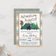 A Adventure Aguarda o Convite para Chá de fraldas de acampamento apresenta um fundo de montanha, ursos e trilhas. A Aventura Espera! Personalize o seu convite! Barato de convites de Bebê impressos personalizados personalizados com seus detalhes. Este design apresenta uma ferramenta Utilizar as ferramentas de design para personalizar o texto, editar as fontes e as cores ou adicionar as suas próprias fotografias para criar um convite de festas divertido.