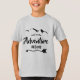 A Aventura Começa A Trendy T-Shirt. Nossa montanha feita à mão com fontes modernas e nossa seta feita à mão rodeiam a citação positiva "e assim a aventura começa". Excelente para viajar, caminhar, escola, começar um novo emprego, vestir moda de tendências, até mesmo reuniões familiares. Você pode personalizar a cor de fundo e o estilo da camisa.