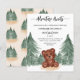 Esta Aventura Orçamentária Aguarda o Convite ao Chá de fraldas apresenta um urso marrom adorável na floresta. Com o exterior e uma floresta aquosa, este é o convite perfeito para o seu chá de fraldas.