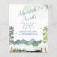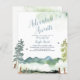 Aventura Aguarda Convites. A design apresenta uma cena de montanha com árvores e textura aquosa. Há material adicional disponível no compro Metro-Events Zazzle e Metro-Event.com.
