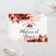 Beleza Rústica Moldada Floral Aquarela Boêmia Outono ou Design de outono com Flores, penas pintadas à Mão de Boho e Muita cor de laranja, ferrugem, vermelha, Borgonha, Marsala, folhas e folhagem coloridas de pêssego. Com elementos de linha desenhada à mão, Fontes e Traços de Pincel com letras sujas à mão serão meus cartões de proposta de honra! Veja meu compro para ver a suíte de casamento inteira para este design!