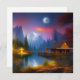 bela cabana enfiada numa enseada isolada rodeada por montanhas, banhada à lua. Arte gerada por Ai por minx267