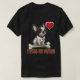 A camisa apresenta uma ilustração adorável de um buldogue francês em close-up, retratado de forma bonitinha e cartoonesa. O cachorro está vestindo um boné de beisebol com um osso cruzado