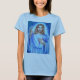 A camisa da senhora azul com imagem de Jesus