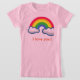 Há um arco-íris na parte superior e debaixo dele à direita diz "eu te amo!"
