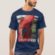 Esta camisa masculina apresenta uma foto na frente de um galo e a parte inferior das fotos diz "O Sussuro de Frango" com letra branca.