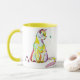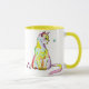 O gato minúsculo do vitral senta-se na caneca! Surpresa!