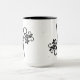 Caneca de café dos cabeleireiro com tesouras e flores no preto em um punho puro do preto do branco 15oz, caneca interna preta com branco puro fora da caneca.