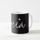 Canecas conhecidas personalizadas para a família inteira criada "giz branco em um estilo no conselho preto". Em toda a fêmea nomeada canecas, há um coração branco colocado sobre "mim". Se seu nome não me tem "" na soletração, esta imagem do coração pode ser removida ou simplesmente ampliado e colocado em outra parte na caneca.