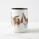 A pintura original das belas artes de cães de Basset do urro pelo artista Carolyn McFann do estúdio de ronrom de dois gatos imprimiu em uma qualidade e em uma caneca de café customizável para amantes do cão.