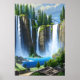 Quedas de água caindo para um lago pequeno, uma floresta no topo do penhasco onde a cascata cai. Esta é uma arte gerada por IA.