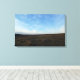 Uma fotografia de uma linha do horizonte desértico com o sol em breve.