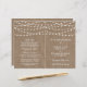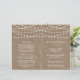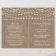 Simples, mas elegante, as luzes de cordas na coleção de noites rustic burlap são um design impressionante com lindas luzes de cordas brancas suspensas em um fundo de efeito burlap, o que é perfeito para qualquer celebração de casamento rústica. Esses programas podem ser personalizados para sua ocasião especial e tornariam a ordem perfeita de serviço para seu casamento, chá de panela, festa de noivado, festa de aniversário e muitas outras ocasiões especiais. Adicione seu texto personalizado a este design usando as caixas "Editar este modelo design" no lado direito do item, ou clique no botão azul "Personalizar" para organizar o texto, alterar as fontes e cores e também adicionar informações ou imagens adicionais a este design. EXIBIR ITENS CORRESPONDENTES PARA ESTA COLEÇÃO