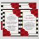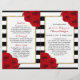 A coleção de luxo moderna de chic apresenta um histórico clássico de listras brancas e pretas, acentuado com belas rosas vermelhas de rubi e uma falso estrutura de folha de ouro. Estes programas duplos são fáceis de personalizar e serão a ordem de serviço perfeita para qualquer casamento, chá de panela, festa de aniversário, celebração de noivados ou qualquer outra ocasião especial.
