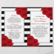 A coleção de luxo moderna de chic apresenta um histórico clássico de listras brancas e pretas, acentuado com belas rosas vermelhas de rubi e uma falso moldura de folha de prata. Estes programas duplos são fáceis de personalizar e serão a ordem de serviço perfeita para qualquer casamento, chá de panela, festa de aniversário, celebração de noivados ou qualquer outra ocasião especial.