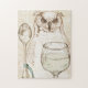 Inspirado pelo "A Coruja e o Gato de Eduardo Lear", este desafiador quebra-cabeça de 252 peças retrata o famoso verso em que os personagens "..jantou em picada, e fatias de marmelo, que comiam com uma colher ruidosa." 14" x 11". Trabalho de arte por Robin Fight. Copyright 2019-2020. Todos os direitos reservados.