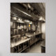 A cozinha institucional com o equipamento para fazer comida a muitas pessoas. Esta é uma arte gerada por IA.