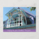 Dizendo "Oi" do Cartão-postal de Martha, Belo Cama e Café da Manhã com um baralho de janela roxo, azul e amarelo-branco.