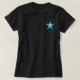 A estrela azul "dois tonifica" o preto do t-shirt