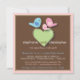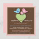 Uma família de pássaro pequena bonito empoleirada em um coração convida seu convidado a um chá de fraldas dos casais