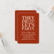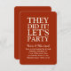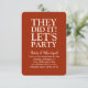 Convites e Anúncios de Recepção de Elopemento Em vez disso, decidiu fugir se tivesse um grande casamento. Mas você ainda quer celebrar seu casamento com seus amigos e família. Estes convites casuais permitem-vos anunciar o fato de que fugiram e agem como um convite a uma festa para celebrar a ocasião. No topo lê-se "Eles fizeram isso! Partido do vamos". Personalize-o com os nomes do casal que fugiu e, em seguida, adicione todos os detalhes do partido. Essas placas 3,5 x 5 são econômicas e divertidas.